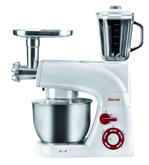 • Power: 1200W • 5,5L Stainless steel bowl • Blender with 1,5L jar • Meat grinder attachment • Beater, whisk and dough hook