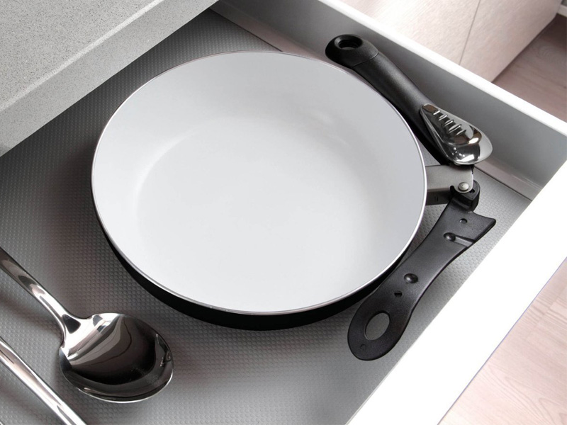 SPAZIO SYSTEM PLUS revoluciona la idea de espacio, trayendo la naturaleza para la cocina. En un elegante color negro, combina un innovador recubrimiento cerámico con el mango plegable y una mayor capacidad. La línea ofrece una solución ecológica e inteligente para aquellos que quieran combinar el placer del arte culinar con una dieta sana y equilibrada, pero con limitaciones de espacio en la cocina. SPAZIO SISTEMA PLUS satisface la creciente demanda de los elementos naturales, mientras que permite que incluso los que tienen una cocina pequeña... Piensa en grande!.