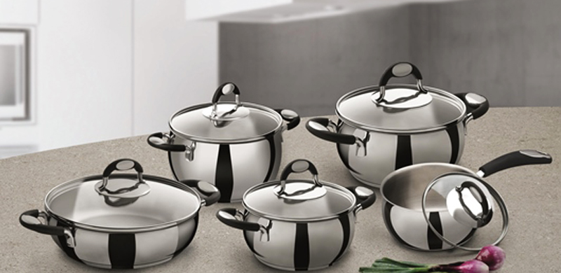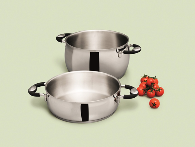 Gama compuesta por un Hervidor de leche; Cacerolas con un o dos mangos de 14 a 24cm; Cacerola baja de 22 y 24 y; ollas de 18 y 24cm y un escurridor de 22cm
