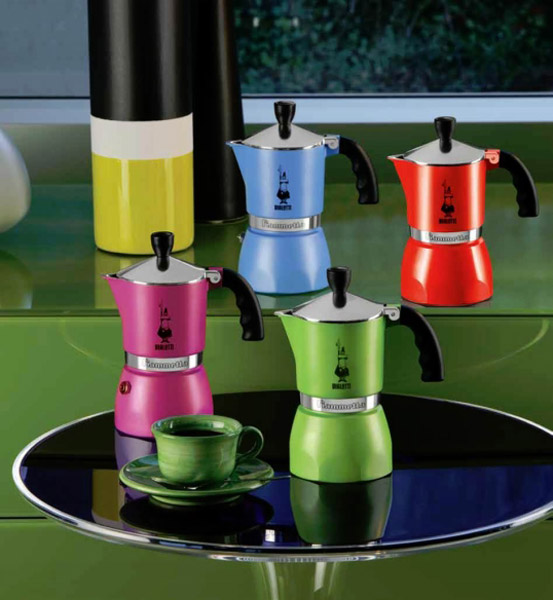 Com Fiammetta, Bialetti ''reinventa'' el color. Una cafetera única que revoluciona el placer de la pausa café, regalando colores alegres y un toque moderno a tu cocina. Sus líneas características y sus colores de actualidad colorean el despertar por las mañanas llenándolo de buen humor y sorprenden a tus huéspedes con las combinaciones llenas de vida de esta graciosa cafetera, que puedes llevar a la mesa a cualquier hora del día.